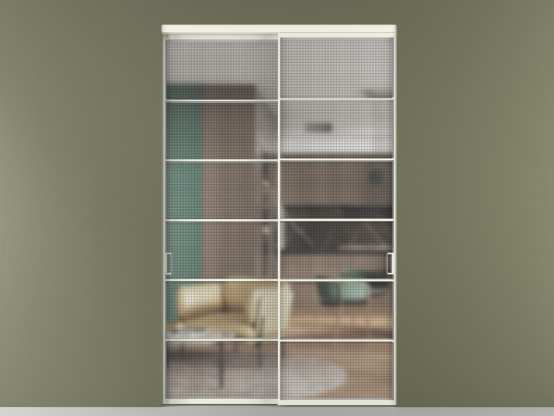 Во всех алюминиевых перегородках, независимо от типа установки, используется компланарный раздвижной механизм, благодаря которому декоративная крышка и полотно находятся в одной плоскости.