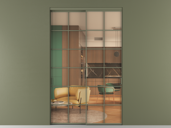 Алюминиевые перегородки имеют единый профиль с алюминиевыми дверьми и легко сочетаются в одном пространстве, не перегружая его. Также их можно комбинировать в интерьере с полотнами из нашего стандартного ассортимента. Помимо этого, система алюминиевых перегородок и дверей координируется со стеновыми панелями Волховец.