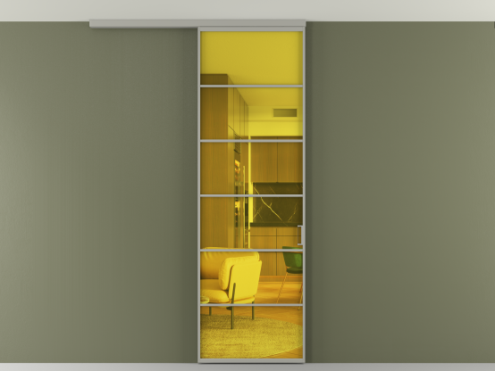 АЛПР 040.04. Алюминий нейтральный серый Прозрачное жёлтое стекло, триплекс, 6мм