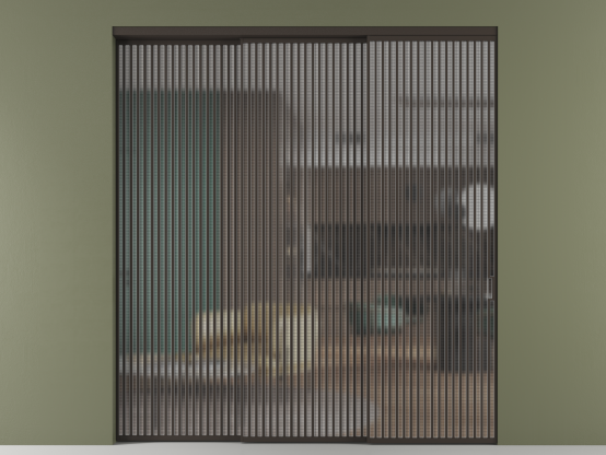 Во всех алюминиевых перегородках, независимо от типа установки, используется компланарный раздвижной механизм, благодаря которому декоративная крышка и полотно находятся в одной плоскости.