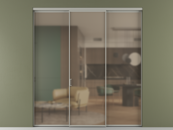 Во всех алюминиевых перегородках, независимо от типа установки, используется компланарный раздвижной механизм, благодаря которому декоративная крышка и полотно находятся в одной плоскости.