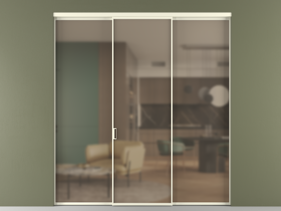 Во всех алюминиевых перегородках, независимо от типа установки, используется компланарный раздвижной механизм, благодаря которому декоративная крышка и полотно находятся в одной плоскости.
