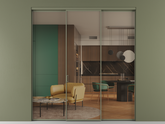 Алюминиевые перегородки имеют единый профиль с алюминиевыми дверьми и легко сочетаются в одном пространстве, не перегружая его. Также их можно комбинировать в интерьере с полотнами из нашего стандартного ассортимента. Помимо этого, система алюминиевых перегородок и дверей координируется со стеновыми панелями Волховец.