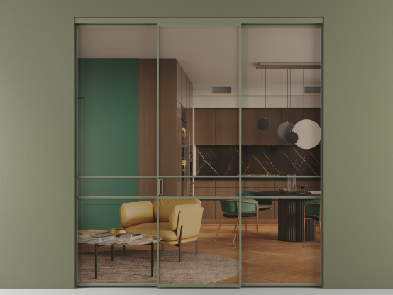 Алюминиевые перегородки имеют единый профиль с алюминиевыми дверьми и легко сочетаются в одном пространстве, не перегружая его. Также их можно комбинировать в интерьере с полотнами из нашего стандартного ассортимента. Помимо этого, система алюминиевых перегородок и дверей координируется со стеновыми панелями Волховец.