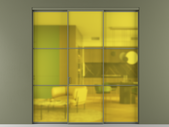 АЛПР 040.03. Алюминий оливковый тёмный Сатинированное жёлтое стекло, триплекс, 6мм