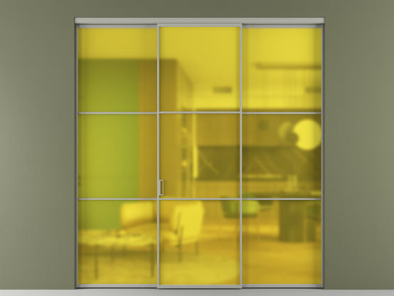 АЛПР 040.03. Алюминий нейтральный серый Сатинированное жёлтое стекло, триплекс, 6мм
