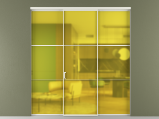 АЛПР 040.03. Алюминий серый Сатинированное жёлтое стекло, триплекс, 6мм