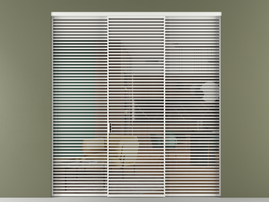 Дополнительно на раздвижную двустворчатую перегородку вдоль стены и четырёхстворчатую перегородку внутри проёма с двумя неподвижным полотнами можно установить механизм синхронного открывания — при открывании одной створки, вторая открывается автоматически.