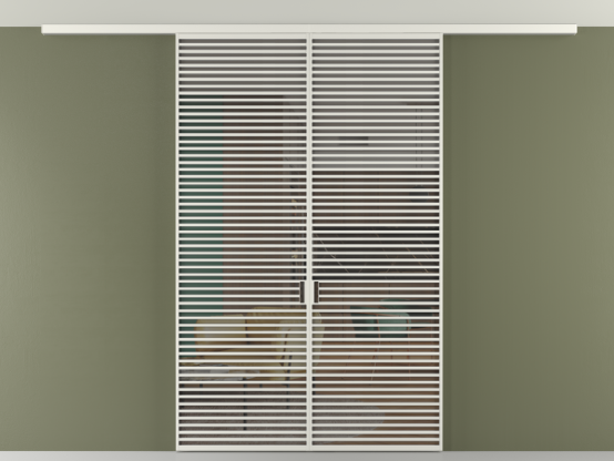 Дополнительно на раздвижную двустворчатую перегородку вдоль стены и четырёхстворчатую перегородку внутри проёма с двумя неподвижным полотнами можно установить механизм синхронного открывания — при открывании одной створки, вторая открывается автоматически.