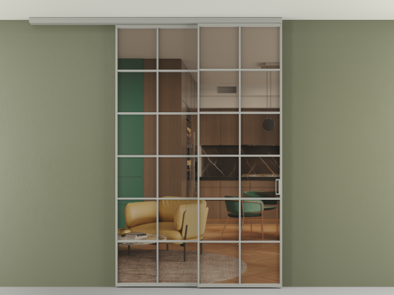Алюминиевые перегородки имеют единый профиль с алюминиевыми дверьми и легко сочетаются в одном пространстве, не перегружая его. Также их можно комбинировать в интерьере с полотнами из нашего стандартного ассортимента. Помимо этого, система алюминиевых перегородок и дверей координируется со стеновыми панелями Волховец.