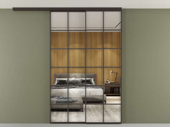 Алюминиевые перегородки имеют единый профиль с алюминиевыми дверьми и легко сочетаются в одном пространстве, не перегружая его. Также их можно комбинировать в интерьере с полотнами из нашего стандартного ассортимента. Помимо этого, система алюминиевых перегородок и дверей координируется со стеновыми панелями Волховец.