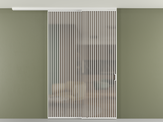 Перегородка Формато вдоль стены на потолок 2 створки с синхронным механизмом