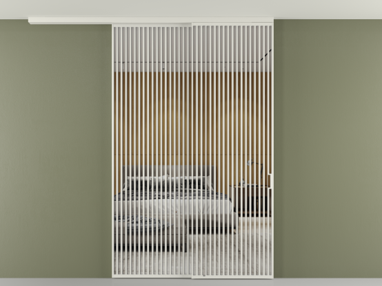 Перегородка Формато вдоль стены на потолок 2 створки с синхронным механизмом