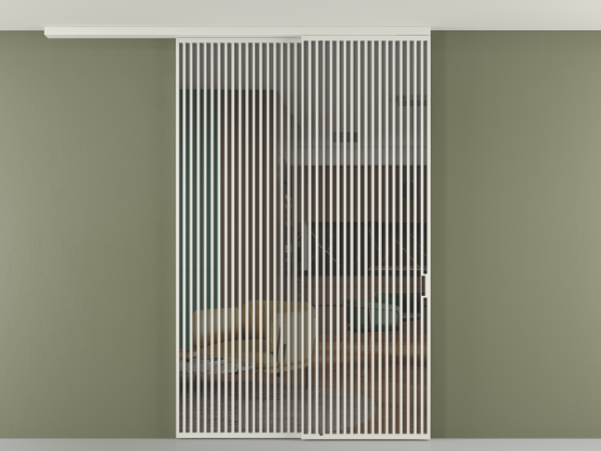 Дополнительно на раздвижную двустворчатую перегородку вдоль стены и четырёхстворчатую перегородку внутри проёма с двумя неподвижным полотнами можно установить механизм синхронного открывания — при открывании одной створки, вторая открывается автоматически.