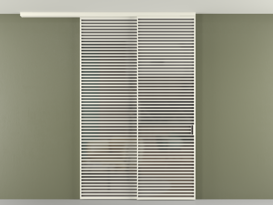 Во всех алюминиевых перегородках, независимо от типа установки, используется компланарный раздвижной механизм, благодаря которому декоративная крышка и полотно находятся в одной плоскости.