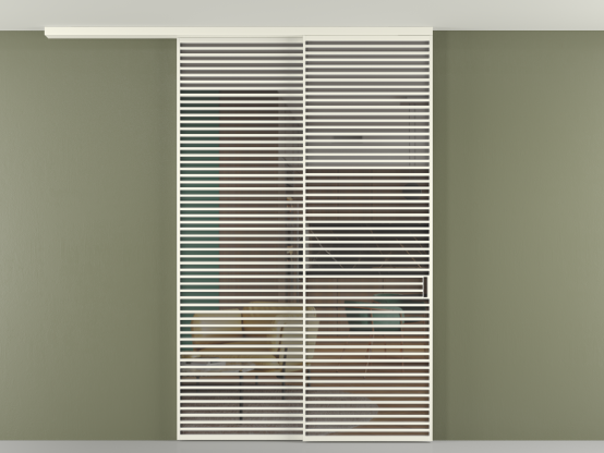 Дополнительно на раздвижную двустворчатую перегородку вдоль стены и четырёхстворчатую перегородку внутри проёма с двумя неподвижным полотнами можно установить механизм синхронного открывания — при открывании одной створки, вторая открывается автоматически.