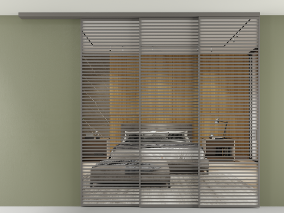 Во всех алюминиевых перегородках, независимо от типа установки, используется компланарный раздвижной механизм, благодаря которому декоративная крышка и полотно находятся в одной плоскости.