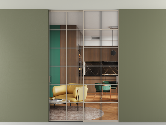 Перегородка Formato внутри проёма скрытое крепление в потолок 2 створки