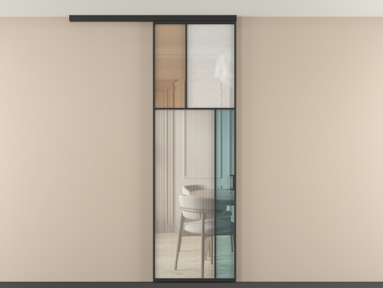 Во всех алюминиевых перегородках, независимо от типа установки, используется компланарный раздвижной механизм, благодаря которому декоративная крышка и полотно находятся в одной плоскости.