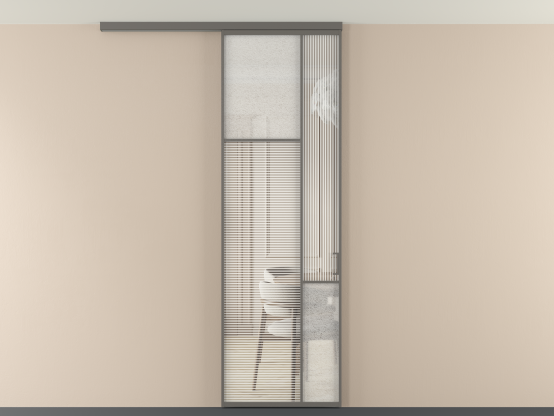 Во всех алюминиевых перегородках, независимо от типа установки, используется компланарный раздвижной механизм, благодаря которому декоративная крышка и полотно находятся в одной плоскости.
