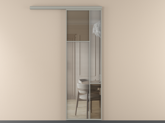 Во всех алюминиевых перегородках, независимо от типа установки, используется компланарный раздвижной механизм, благодаря которому декоративная крышка и полотно находятся в одной плоскости.