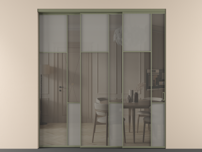 Перегородка Mosaic внутри проёма 3 створки с синхронным механизмом