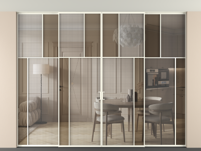 Перегородка Mosaic внутри проёма четырёхстворчатая со скрытым креплением в потолок