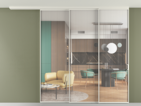 Перегородка Формато вдоль стены на потолок 3 створки с синхронным механизмом
