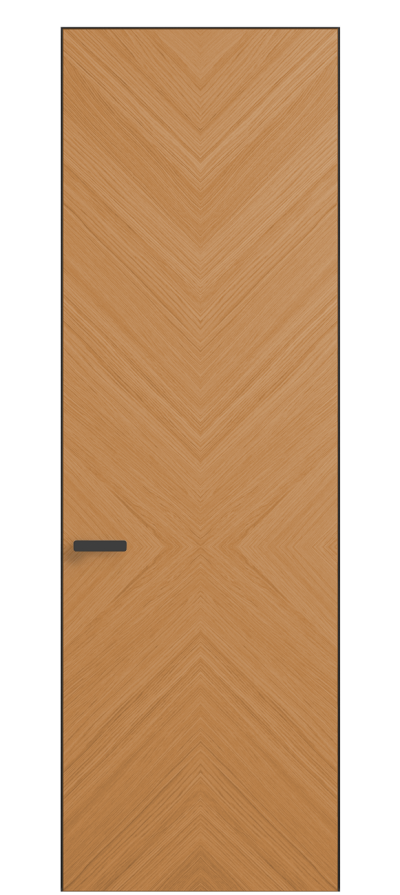 Полотно Rift в скрытом алюминиевом коробе становится полноценным элементом декора. В коллекции представлено 9 моделей дверей в высоте до 3 метров. Рисунок раскладки шпона варьируется от простого до сложного. «Рубашка» для каждого полотна подбирается вручную по цвету, текстуре и фактуре.