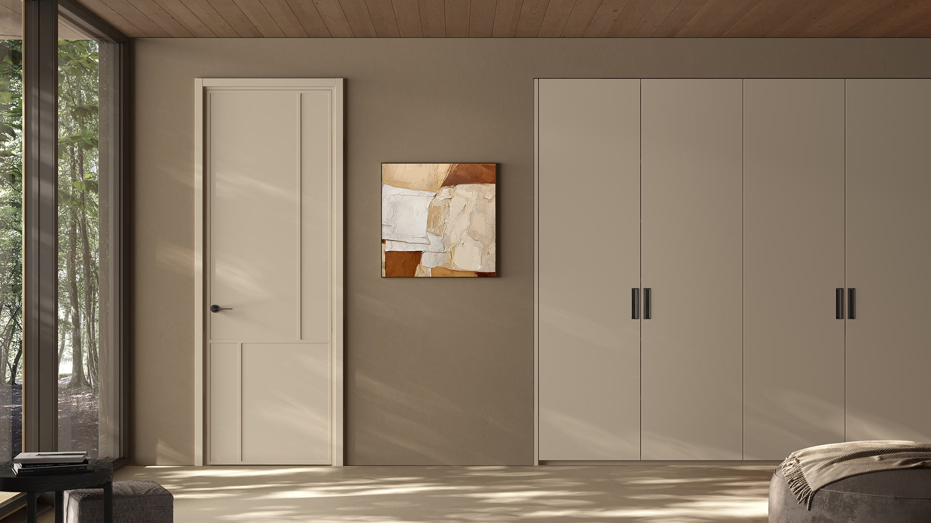 Frame — минималистичная коллекция фрезерованных дверей в матовой эмали. Баланс форм достигается за счёт тонкой лаконичной рамки, создающей простые геометрические формы на полотне. Такой приём актуален в современных мебельных фасадах, что позволяет создать трендовое решение в интерьере.