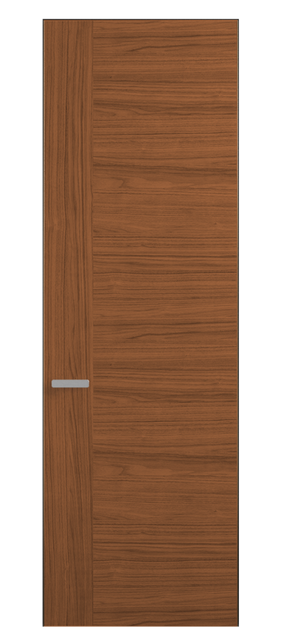 Полотно Rift в скрытом алюминиевом коробе становится полноценным элементом декора. В коллекции представлено 9 моделей дверей в высоте до 3 метров. Рисунок раскладки шпона варьируется от простого до сложного. «Рубашка» для каждого полотна подбирается вручную по цвету, текстуре и фактуре.