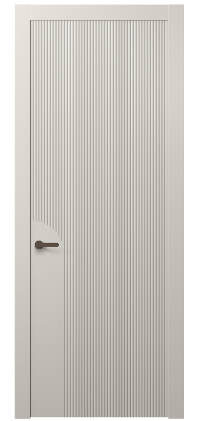 Dune — коллекция дверей украшена частой прямой фрезеровкой, которая напоминает волны дюн в пустыне. Созданная на поверхности полотна текстура привлекает взгляд и добавляет глубину пространству. Двери Dune — это сочетание современного дизайна и вдохновения живописными природными ландшафтами.