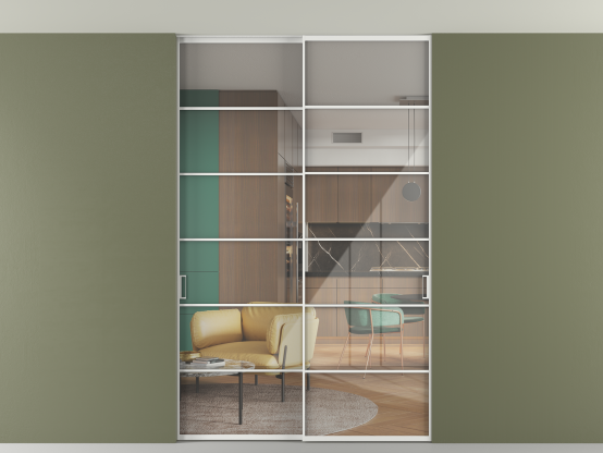 Алюминиевые перегородки имеют единый профиль с алюминиевыми дверьми и легко сочетаются в одном пространстве, не перегружая его. Также их можно комбинировать в интерьере с полотнами из нашего стандартного ассортимента. Помимо этого, система алюминиевых перегородок и дверей координируется со стеновыми панелями Волховец.