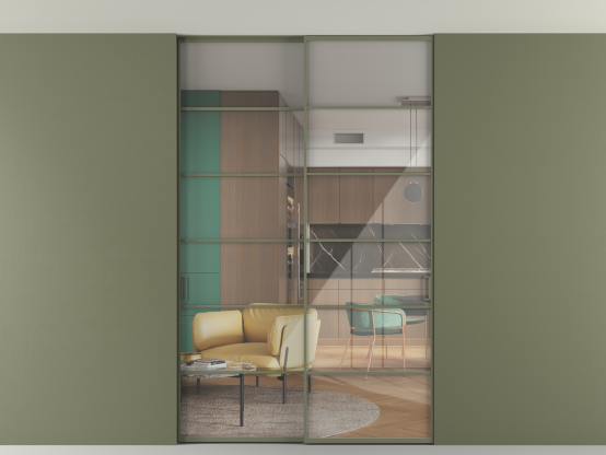 Алюминиевые перегородки имеют единый профиль с алюминиевыми дверьми и легко сочетаются в одном пространстве, не перегружая его. Также их можно комбинировать в интерьере с полотнами из нашего стандартного ассортимента. Помимо этого, система алюминиевых перегородок и дверей координируется со стеновыми панелями Волховец.