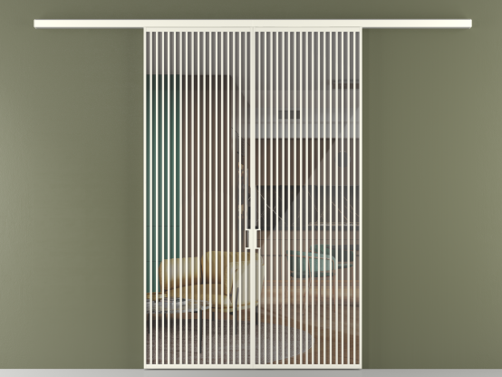 Дополнительно на раздвижную двустворчатую перегородку вдоль стены и четырёхстворчатую перегородку внутри проёма с двумя неподвижным полотнами можно установить механизм синхронного открывания — при открывании одной створки, вторая открывается автоматически.