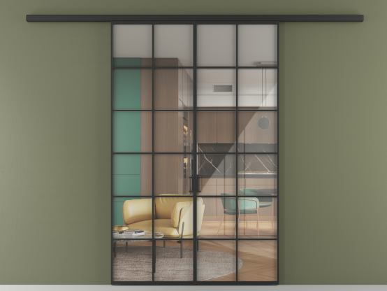Алюминиевые перегородки имеют единый профиль с алюминиевыми дверьми и легко сочетаются в одном пространстве, не перегружая его. Также их можно комбинировать в интерьере с полотнами из нашего стандартного ассортимента. Помимо этого, система алюминиевых перегородок и дверей координируется со стеновыми панелями Волховец.