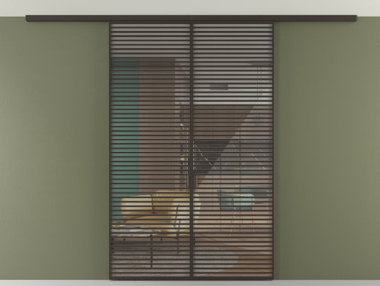 Во всех алюминиевых перегородках, независимо от типа установки, используется компланарный раздвижной механизм, благодаря которому декоративная крышка и полотно находятся в одной плоскости.