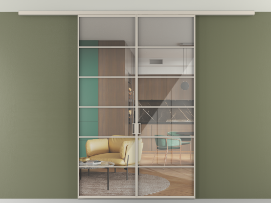 Алюминиевые перегородки имеют единый профиль с алюминиевыми дверьми и легко сочетаются в одном пространстве, не перегружая его. Также их можно комбинировать в интерьере с полотнами из нашего стандартного ассортимента. Помимо этого, система алюминиевых перегородок и дверей координируется со стеновыми панелями Волховец.