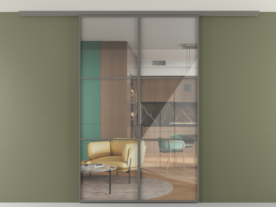 Алюминиевые перегородки имеют единый профиль с алюминиевыми дверьми и легко сочетаются в одном пространстве, не перегружая его. Также их можно комбинировать в интерьере с полотнами из нашего стандартного ассортимента. Помимо этого, система алюминиевых перегородок и дверей координируется со стеновыми панелями Волховец.