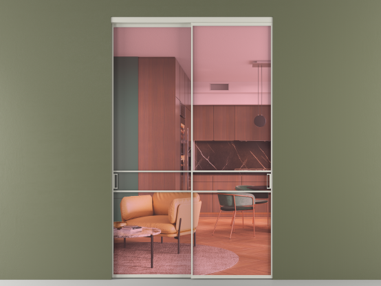 Алюминиевые перегородки имеют единый профиль с алюминиевыми дверьми и легко сочетаются в одном пространстве, не перегружая его. Также их можно комбинировать в интерьере с полотнами из нашего стандартного ассортимента. Помимо этого, система алюминиевых перегородок и дверей координируется со стеновыми панелями Волховец.