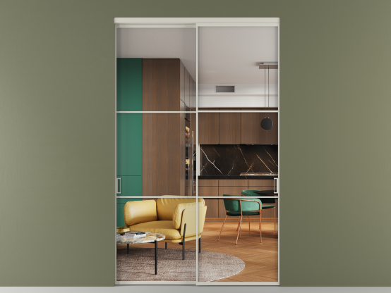 Алюминиевые перегородки имеют единый профиль с алюминиевыми дверьми и легко сочетаются в одном пространстве, не перегружая его. Также их можно комбинировать в интерьере с полотнами из нашего стандартного ассортимента. Помимо этого, система алюминиевых перегородок и дверей координируется со стеновыми панелями Волховец.