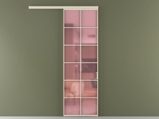 АЛПР 040.05. Алюминий бежево-серый Сатинированное розовое стекло, триплекс, 6мм