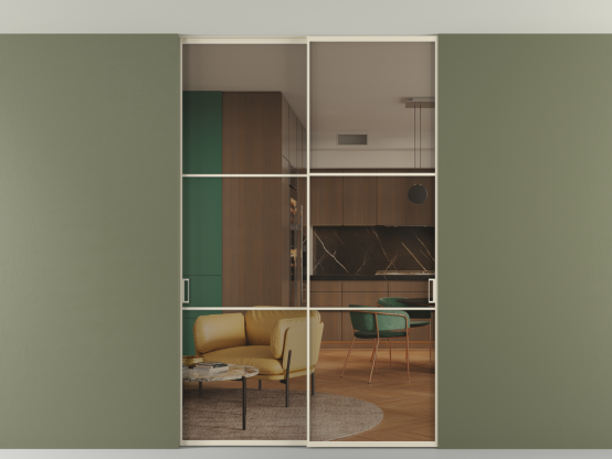 Алюминиевые перегородки имеют единый профиль с алюминиевыми дверьми и легко сочетаются в одном пространстве, не перегружая его. Также их можно комбинировать в интерьере с полотнами из нашего стандартного ассортимента. Помимо этого, система алюминиевых перегородок и дверей координируется со стеновыми панелями Волховец.