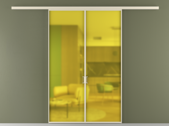 АЛПР 040.01. Алюминий бежево-серый Сатинированное жёлтое стекло, триплекс, 6мм