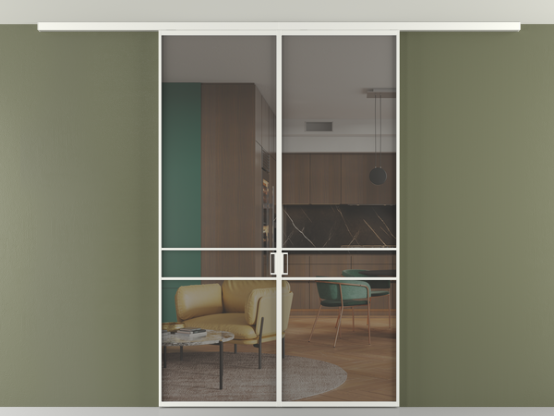 Алюминиевые перегородки имеют единый профиль с алюминиевыми дверьми и легко сочетаются в одном пространстве, не перегружая его. Также их можно комбинировать в интерьере с полотнами из нашего стандартного ассортимента. Помимо этого, система алюминиевых перегородок и дверей координируется со стеновыми панелями Волховец.