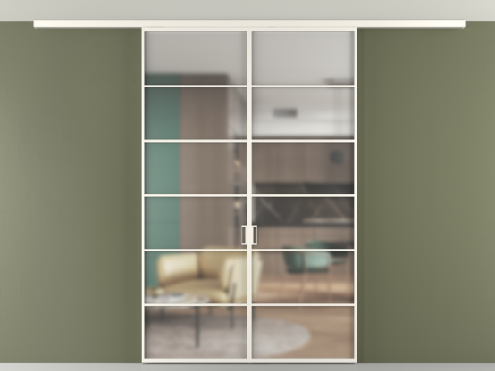 Во всех алюминиевых перегородках, независимо от типа установки, используется компланарный раздвижной механизм, благодаря которому декоративная крышка и полотно находятся в одной плоскости.