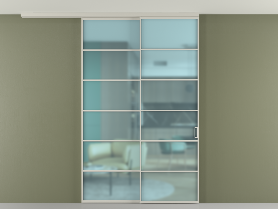 Во всех алюминиевых перегородках, независимо от типа установки, используется компланарный раздвижной механизм, благодаря которому декоративная крышка и полотно находятся в одной плоскости.