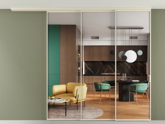 Перегородка Формато вдоль стены на потолок 3 створки с синхронным механизмом