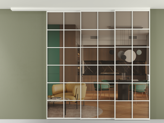Алюминиевые перегородки имеют единый профиль с алюминиевыми дверьми и легко сочетаются в одном пространстве, не перегружая его. Также их можно комбинировать в интерьере с полотнами из нашего стандартного ассортимента. Помимо этого, система алюминиевых перегородок и дверей координируется со стеновыми панелями Волховец.