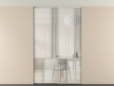 Во всех алюминиевых перегородках, независимо от типа установки, используется компланарный раздвижной механизм, благодаря которому декоративная крышка и полотно находятся в одной плоскости.